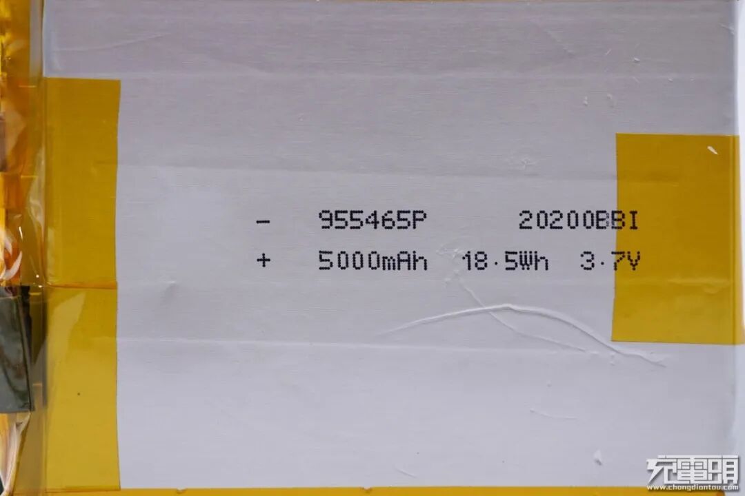 单块电芯容量为5000mAh 18.5Wh 3.7V。