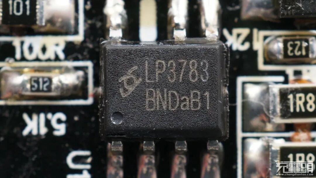 丝印LP3783是来自芯茂微电子的PWM主控芯片LP3783B,这是一款高性能隔离型适配器和充电器的控制芯片,内置开关管。通过原边侧的电流和电压检测实现恒流和恒压功能,内置环路稳定性补偿,可以省略TL431和光电耦合器,减少外围元件数量。