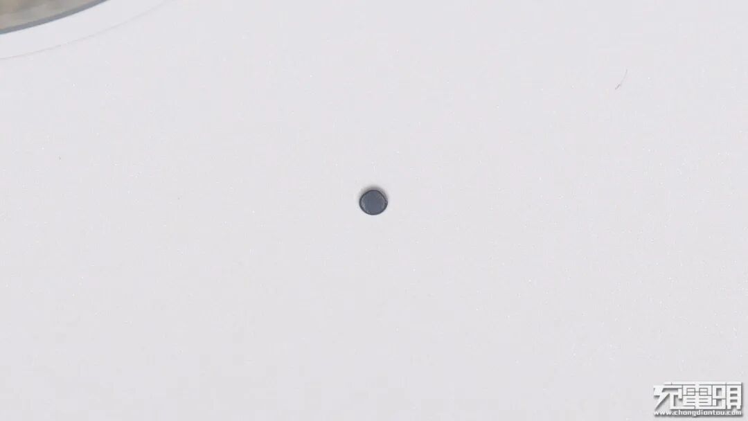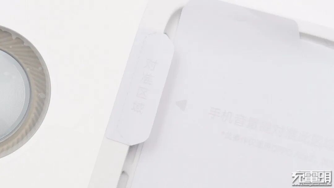 在风扇和无线充交界处贴有提示贴纸,用户在放置手机时将音量调整按键对准贴纸位置,才能获得最好充电效果。