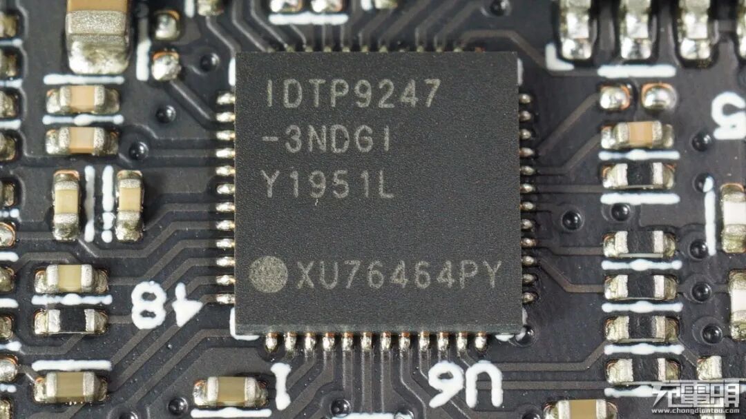 无线充电主控芯片采用IDT艾迪悌IDTP9247,内置功率管驱动,用于无线充电发射控制。