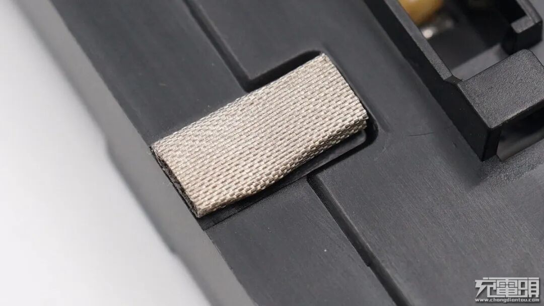 塑料壳边缘有导电布接地。