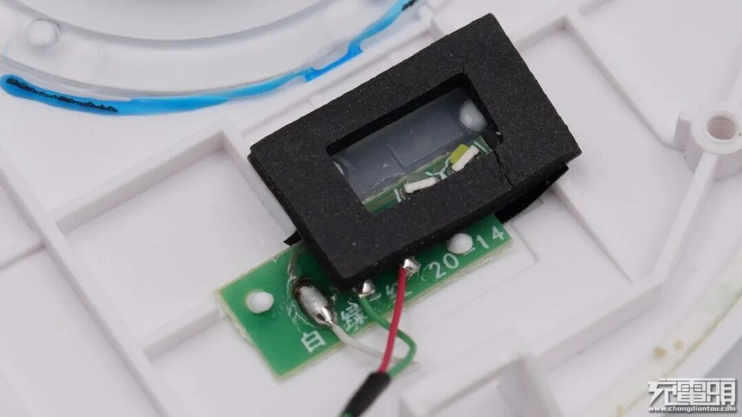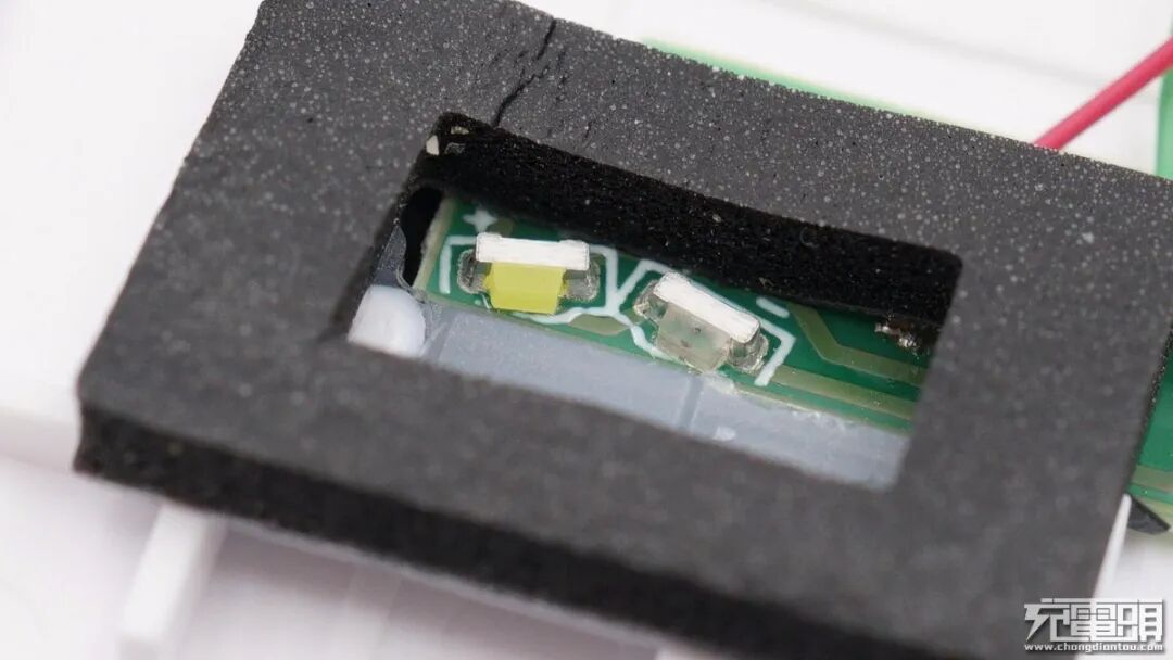 两颗LED灯周围有泡棉围住,避免漏光。