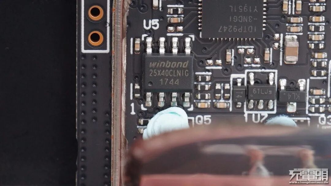 IDT方案特有的外置存储器,采用Winbond华邦串口式 NOR 型闪存W25X40CL,用于存储无线充电配置。