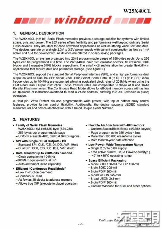 华邦 W25X40CL详细资料信息。充电头网了解到,Winbond华邦W25X40CL还被华为无线快充充电器(CP85)、坚果闹钟式无线充电座、Google Pixel Stand谷歌无线充电器等产品使用。