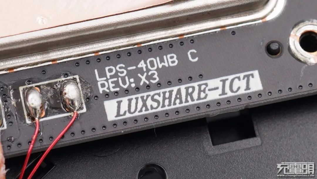 从PCB板上的丝印信息可知,OPPO这款40W无线快充充电器由立讯精密代工。