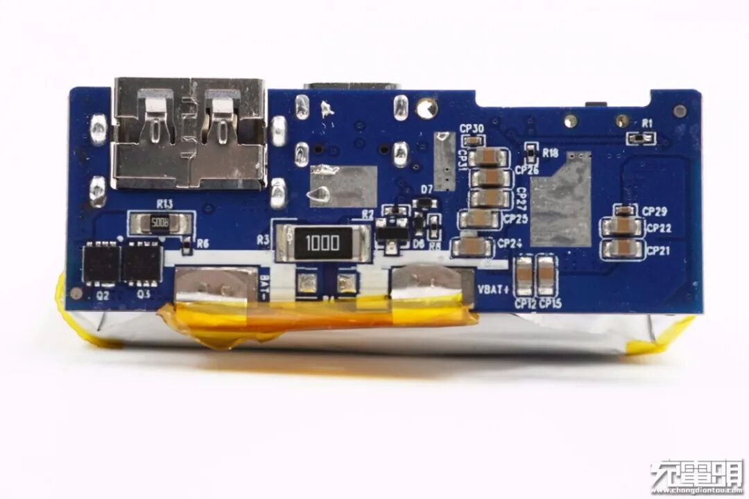 USB-A口旁边一颗锂电池保护IC。