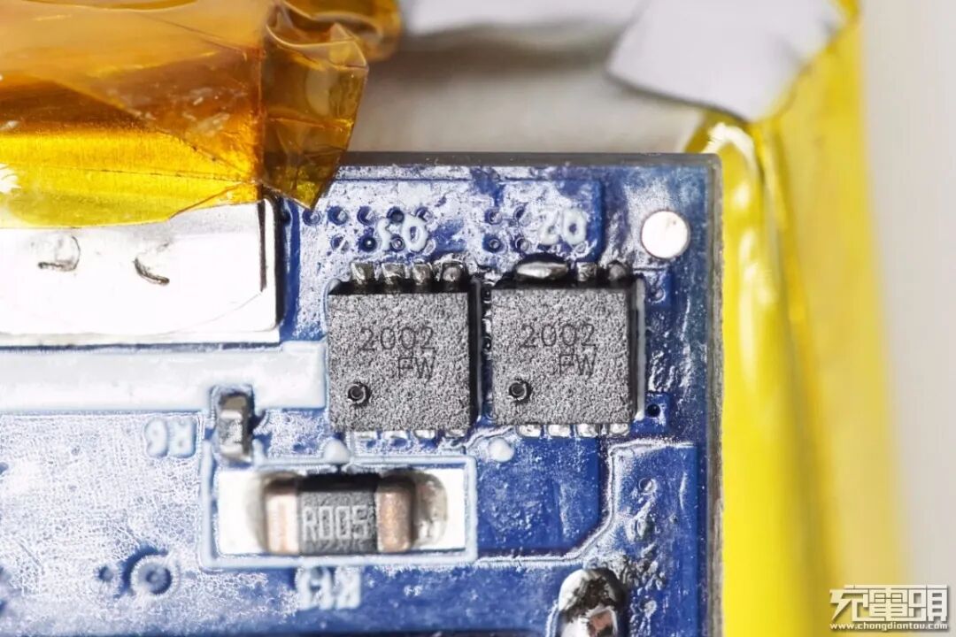 两颗丝印2002的电池保护管。