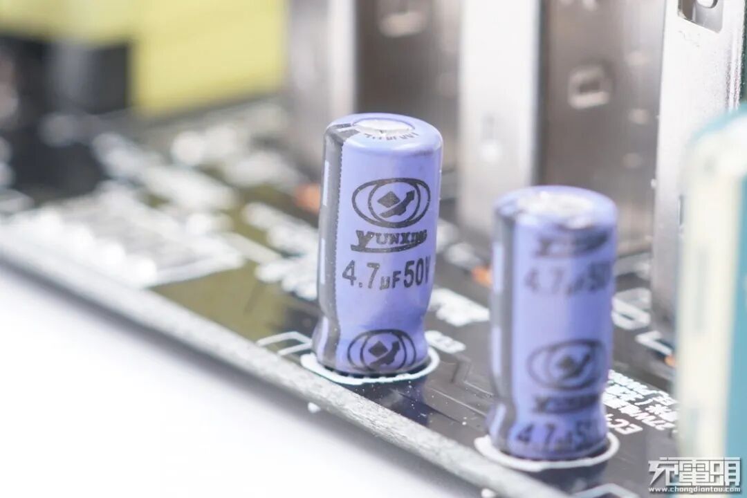 输出滤波方面则采用了三颗规格为16V 470μF的固态电容。据了解,云星电子“YX”牌固态电容于2017年正式推向市场,具备高低温特性好、长寿命、超低ESR、耐纹波性能强等特点。该系列固态电容此前已被倍思65W、RCOK 65W、MOMAX 65W、Lapo 65W等氮化镓产品采用,助力消费类电源的升级,同时还进入了飞利浦、百达星连、爱否开物、邦克仕等品牌客户的快充供应链,得到客户一致好评。