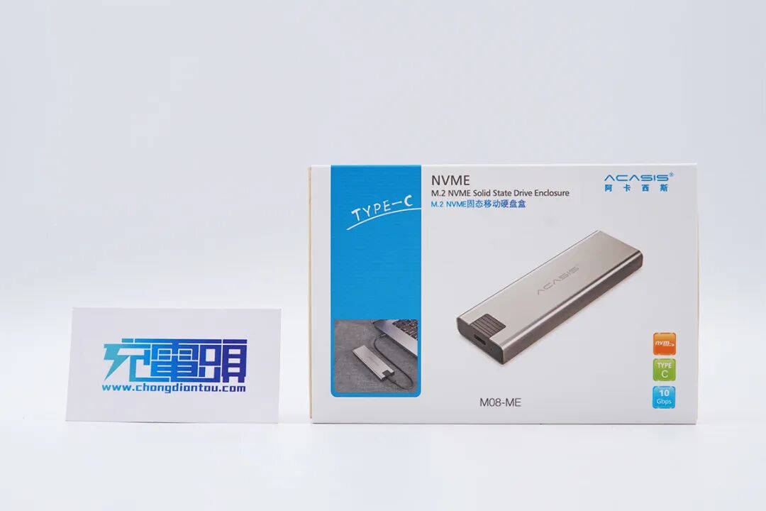 此前充电头网到手了一款ACASIS阿卡西斯雷电3移动硬盘盒FA-TB34,并第一时间对其进行了拆解。今天继续为大家带来另一款M.2 NVME固态移动硬盘盒M08-ME的拆解,看看里面用料如何。
