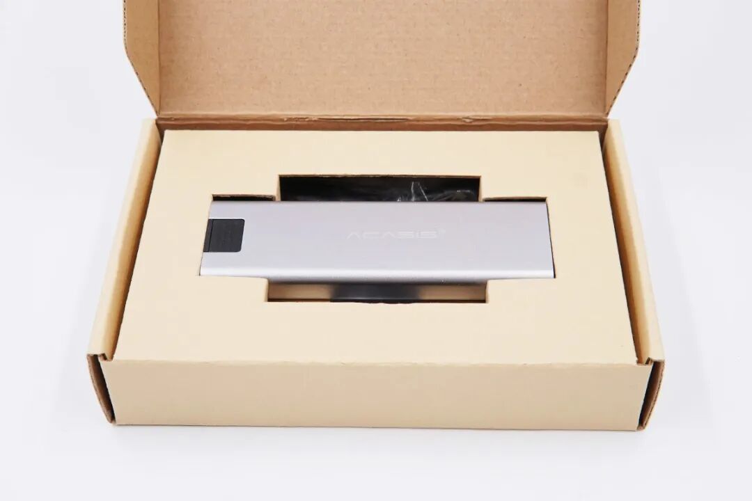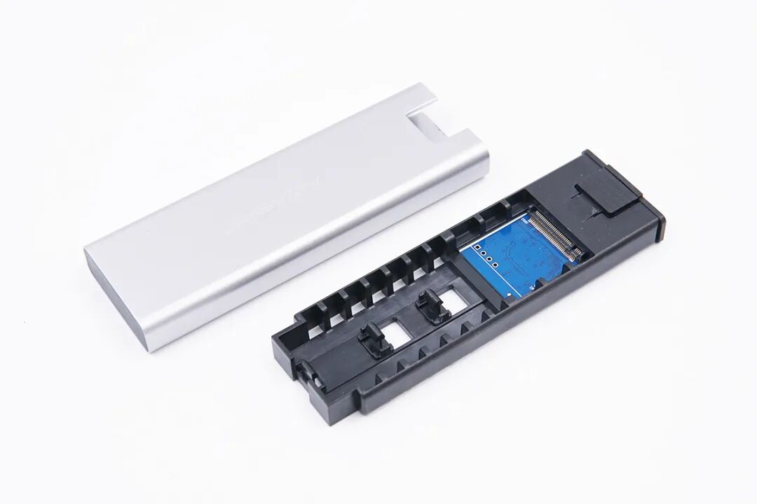 ACASIS阿卡西斯M.2 NVME固态移动硬盘盒采用铝合金金属外壳,坚固耐用,表面进行喷砂处理工艺细腻,内部塑料框架为抽拉式设计,进行固态硬盘组装很方便,而且整体小巧轻便,易于携带。