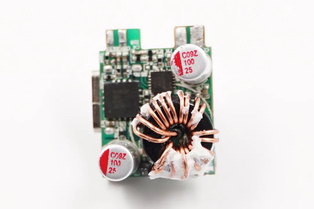 中间的电感配合南芯SC8002进行二次降压;旁边的两颗固态电容规格都是25V 100μF,用于USB-C口同步整流降压输出滤波。