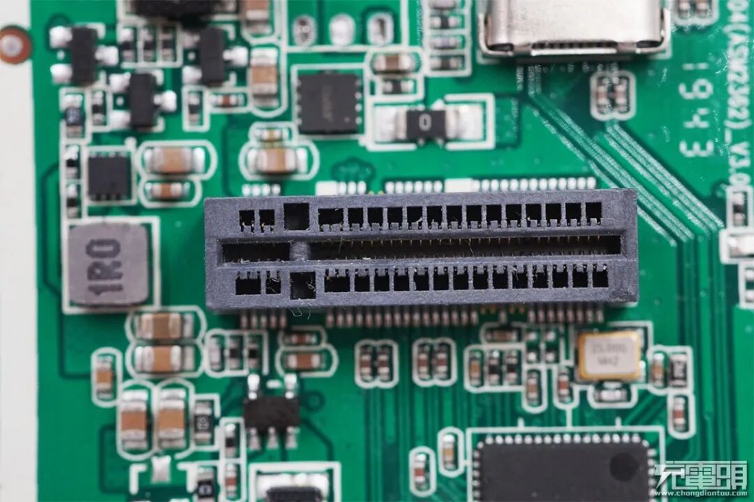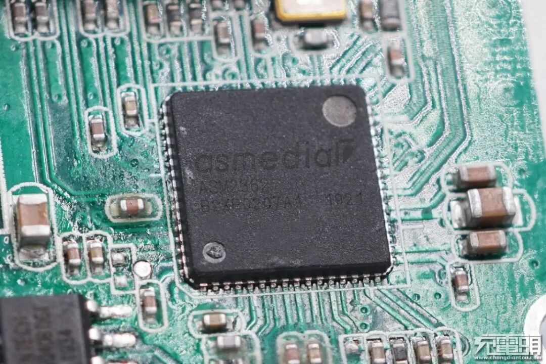 充电头网通过拆解发现,内部采用ASMedia祥硕ASM2362桥接芯片,谷峰G16P03 PMOS,钰泰 ETA3451同步降压转换器和天钰FP6381A降压转换器等,协同工作为NVMe固态硬盘供电及传输数据。PCB板正面与机身壳之间中空隔离,并且使用螺丝固定很牢固。