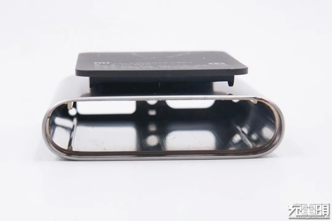 产品机身采用铝合金外壳,表面阳极氧化和喷砂处理,两侧为半圆弧面设计,触摸手感好,此外机身正面镭雕小米“MI”品牌。