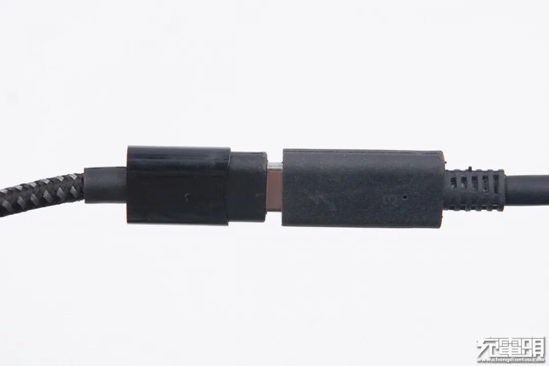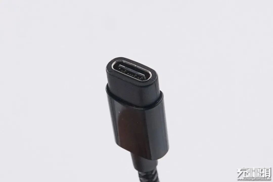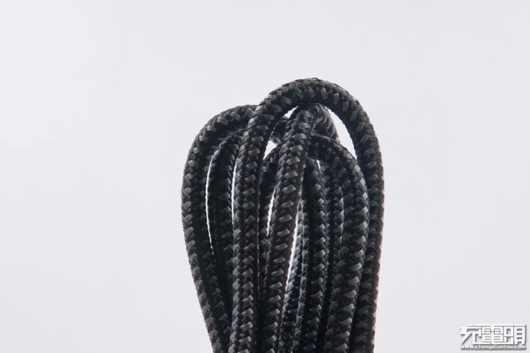 线身编织外衣使用黑灰编织线交叉编织,编织得很紧密,而且整根线光滑无毛刺,相比纯TPE材质线材而言,编织线更加抗拉扯。