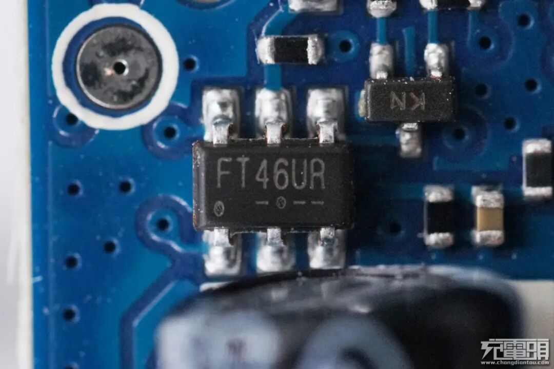USB-A接口协议芯片采用天钰FP6601Q。FP6601Q是一款快充协议芯片,支持高通QC3.0/2.0与华为FCP,通过监控USB D+/D-上的电压数据自动调整供电设备上的输出电压,互相握手识别后设备提升充电功率缩短充电时间。在本身就支持QC3.0,QC2.0和FCP的情况下,还能自动识别APPLE、三星、BC1.2协议。