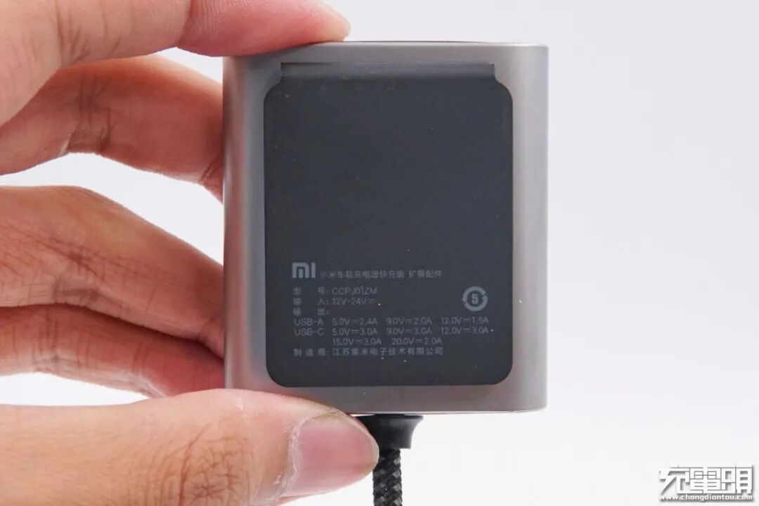 小米此前推出了一款双口快充车载充电器,与我们常见车充产品不同是,这款产品在机身侧面开了一个孔,搭配小米自家的拓展配件,可以为后排乘客提供两个充电接口。