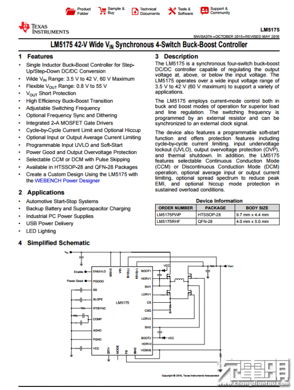 TI德州仪器的LM5175,单电感同步升降压控制器。
