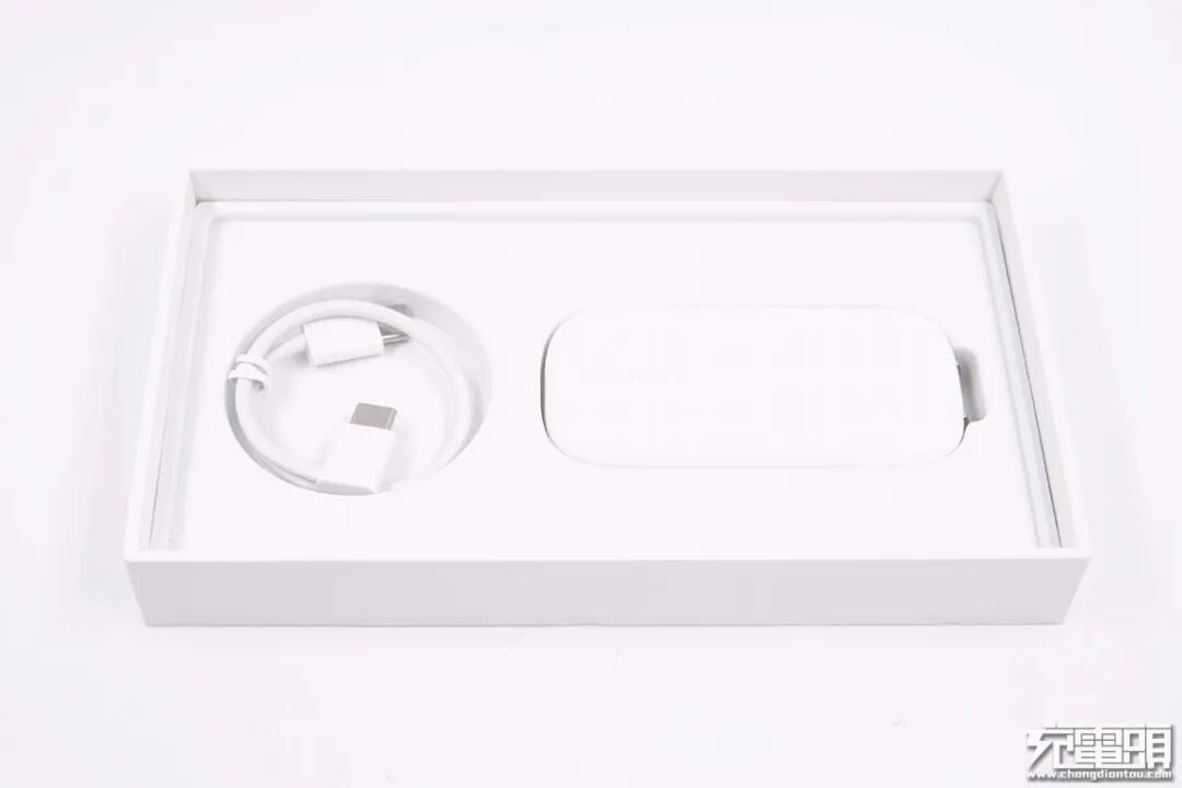 包装内附带一条双头C线和充电器,充电器非常的薄。