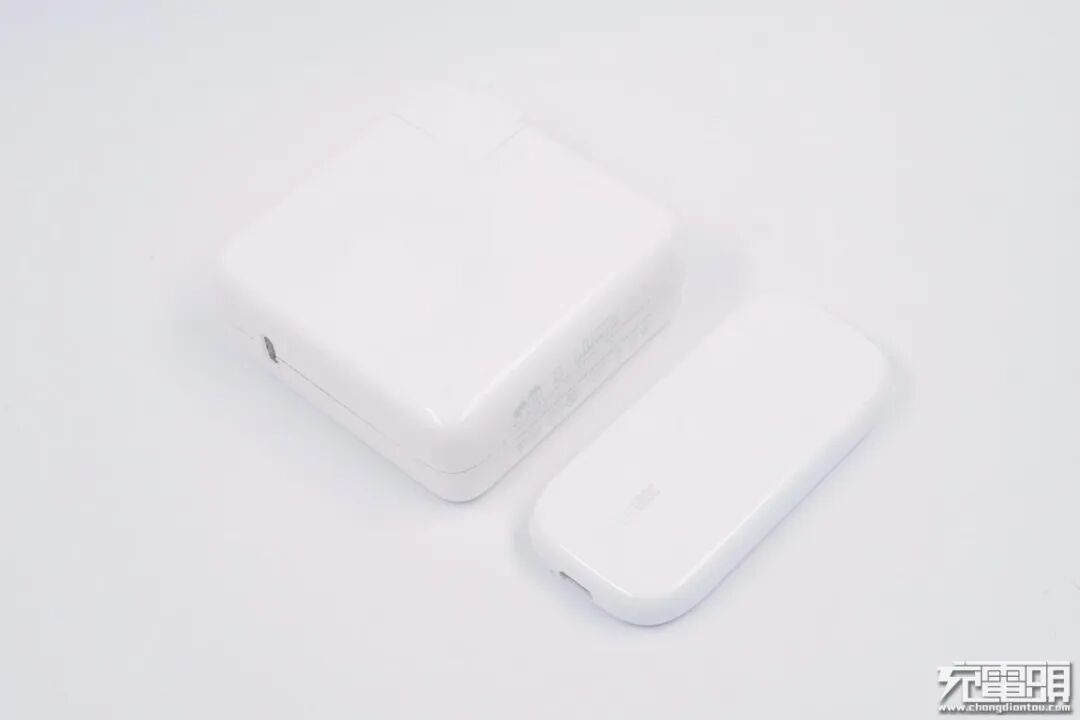 和苹果61W充电器相比,体积优势非常明显。