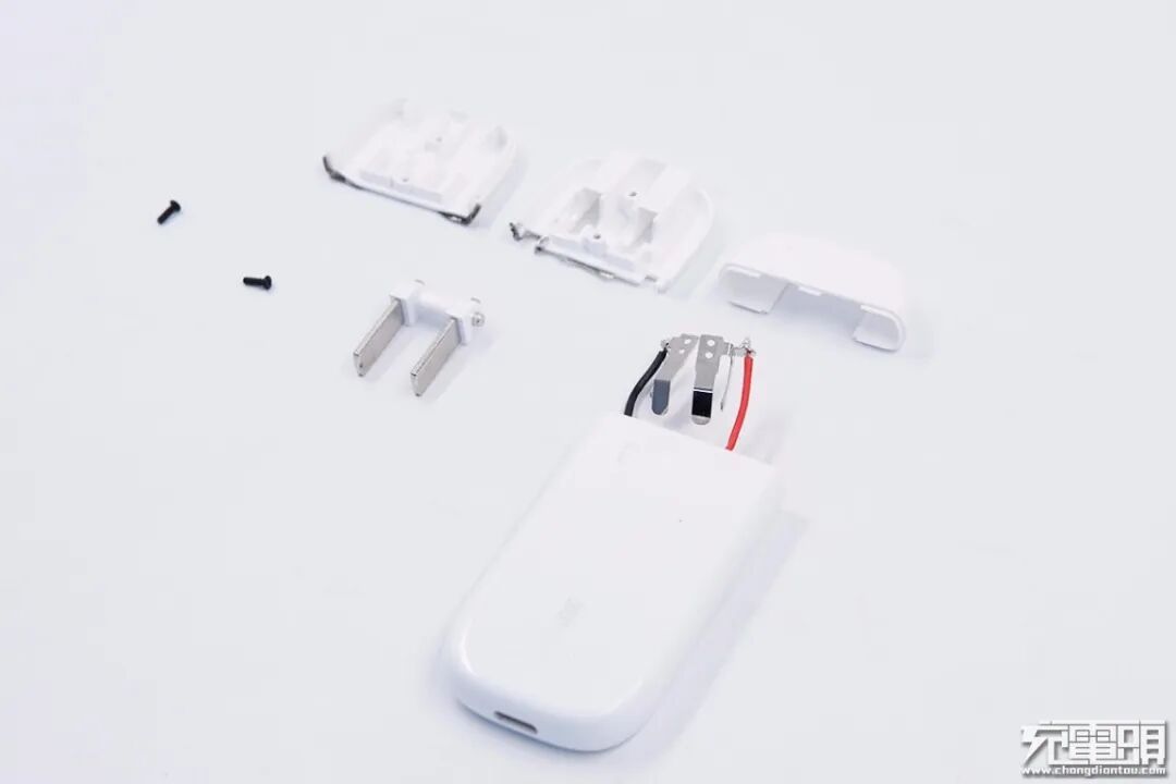 沿接缝处打开充电器,插头部分单独为一个壳体。