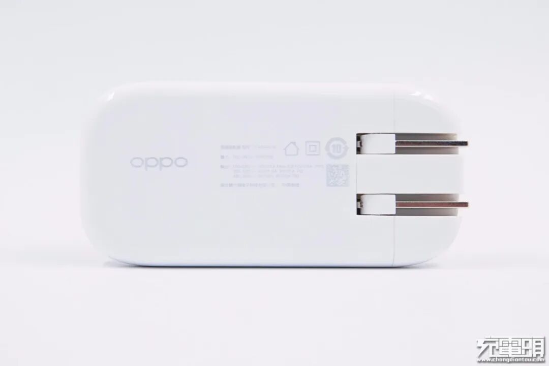 和OPPO 65W SUPERVOOC闪充充电器直观对比,机身略显修长,并且插脚为可折叠设计,体型更纤薄,携带更方便。