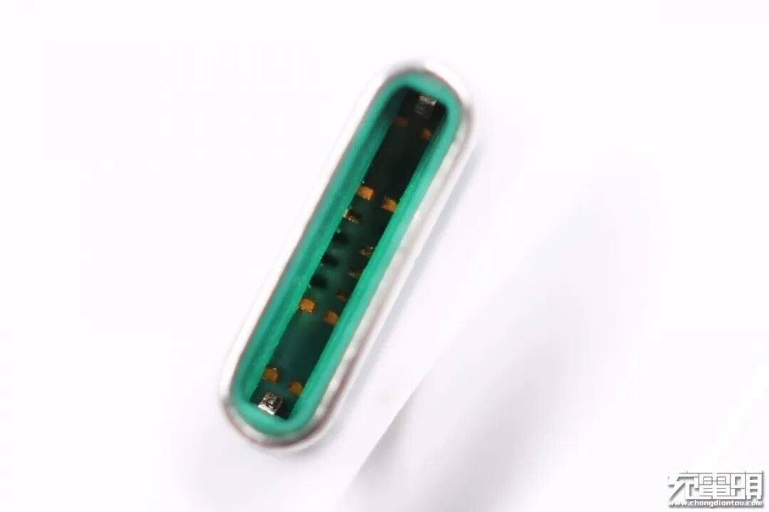 USB-C接口特写,白色胶芯。