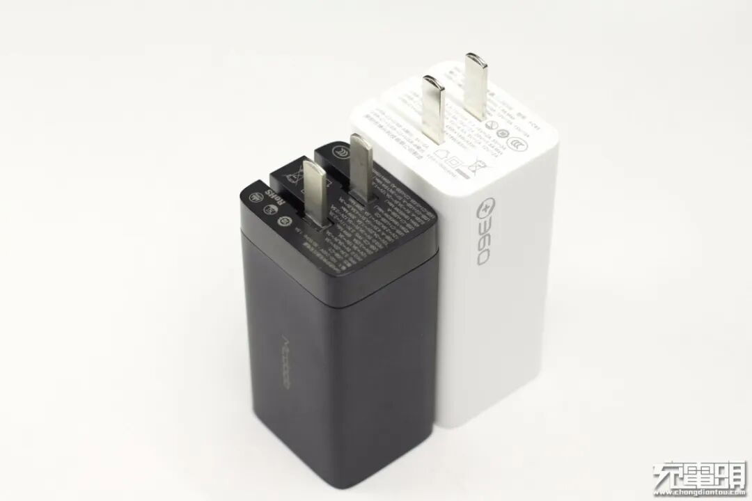 输入端配备可折叠国标插脚,收放自如携带更方便,且不会刮伤包里其它电子产品。此外根据麦多多官网介绍,产品有黑白颜色以及美规、英规和欧规插脚供消费者选择。