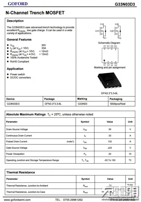 GOFORD谷峰的G33N03D3, 双NMOS,耐压30V,这里作为USB-C2口和USB-A口的输出VBUS开关。