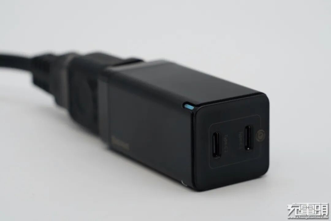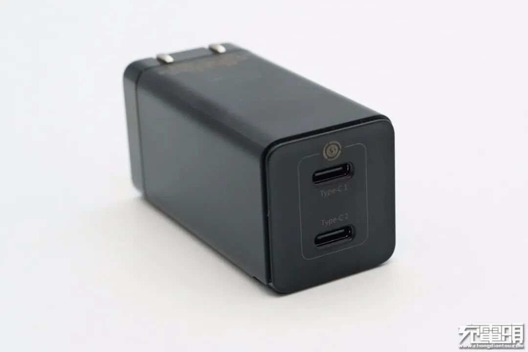 输出顶面两个USB-C口黑色胶芯不露铜,接口旁印有标识,方便区别。