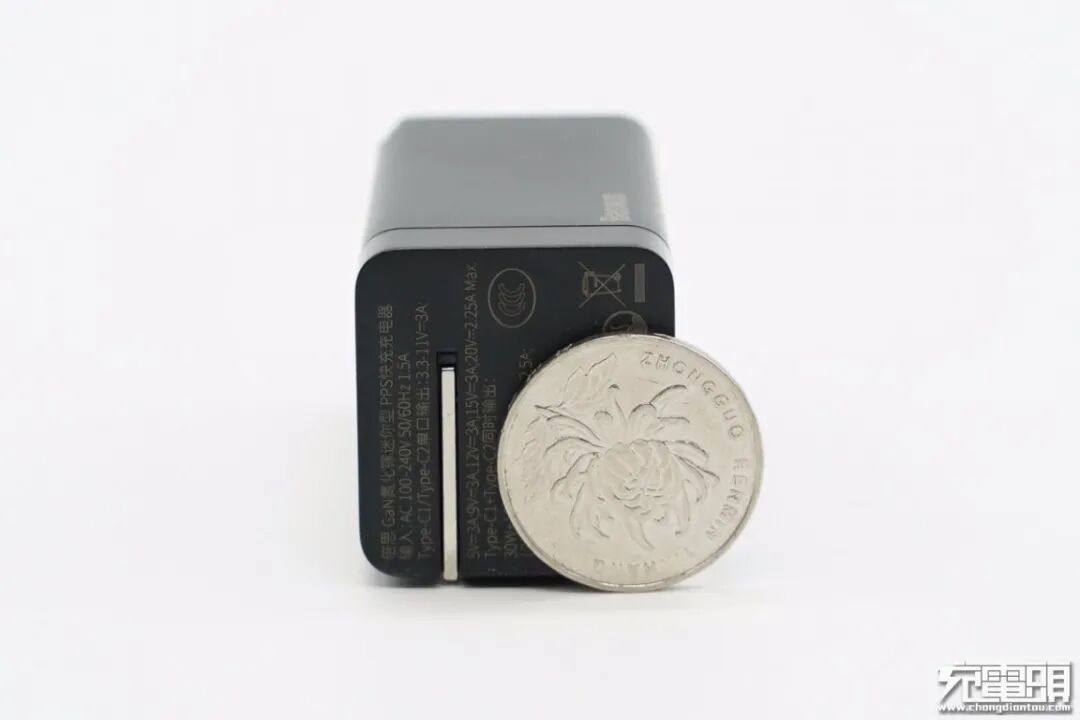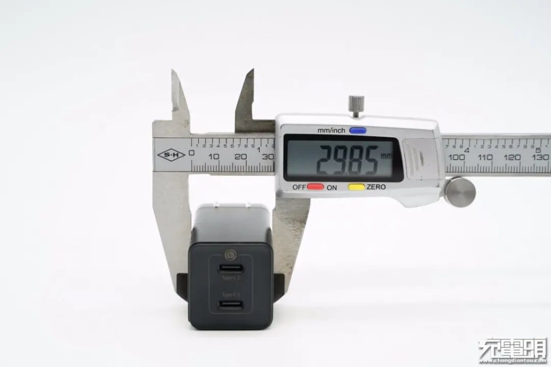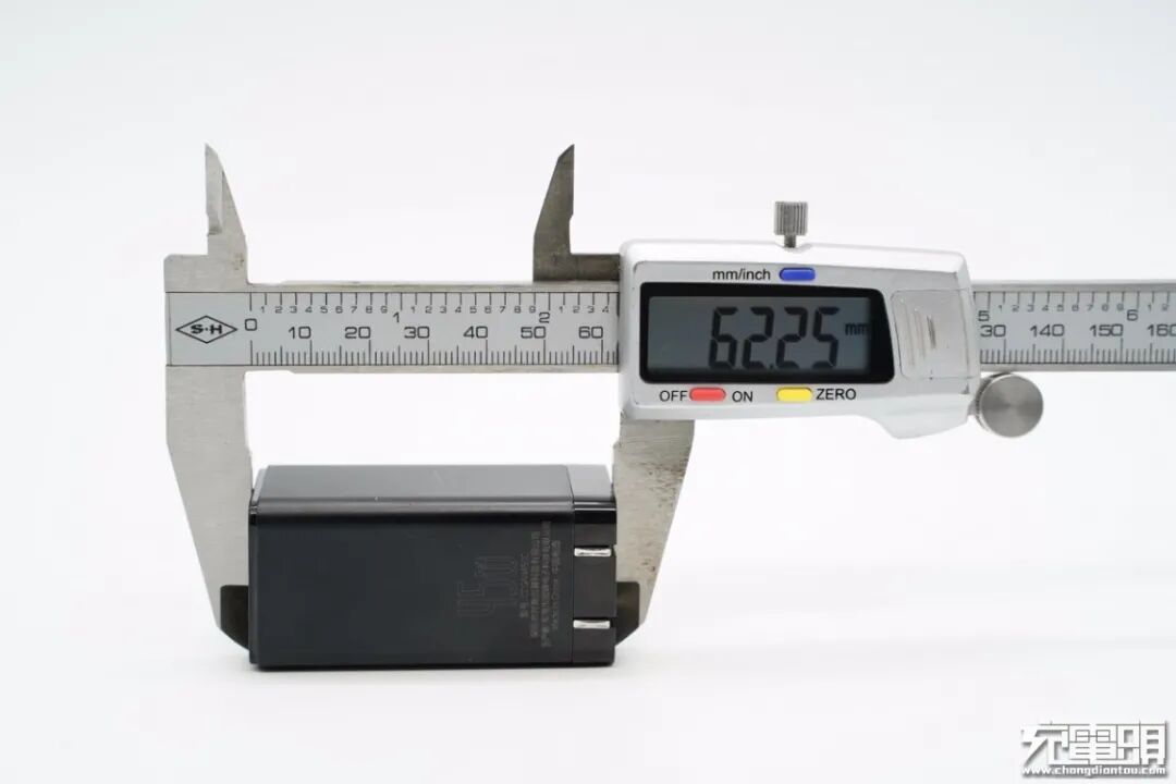 高度为31.85mm。根据三围参数可计算出功率密度,倍思45W氮化镓充电器按照45W来计算功率密度为:0.76W / cm³。