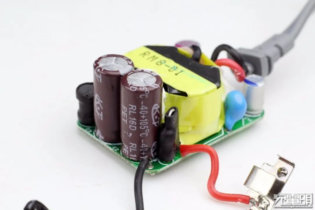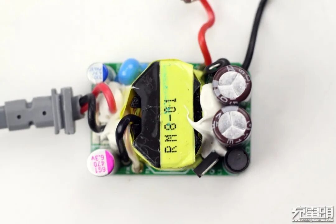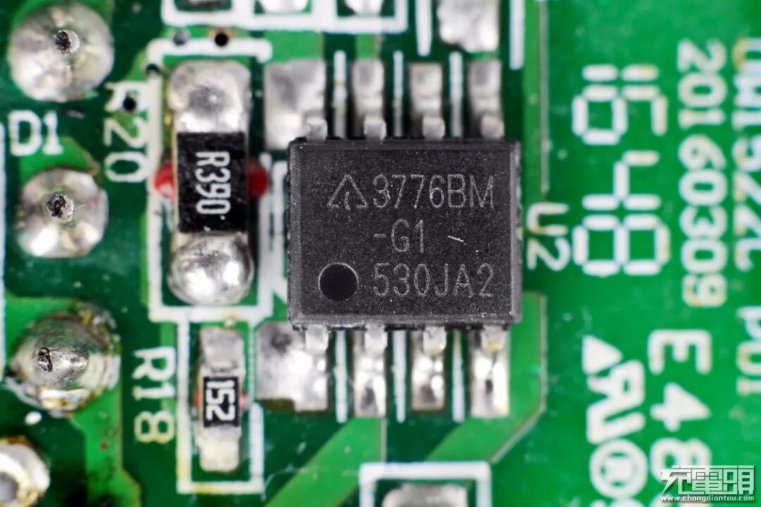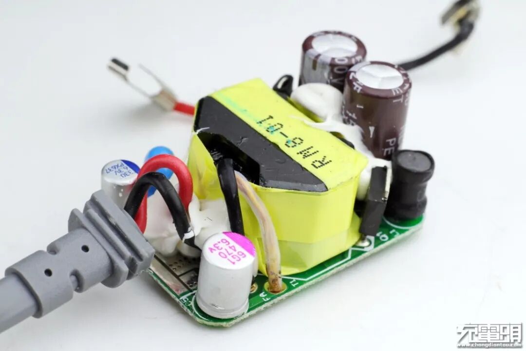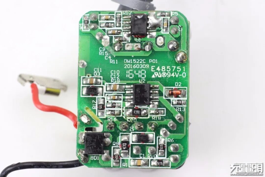充电头网通过拆解了解到,这款充电器内部结构简洁明了,初次级分界明显。输入输出端元器件打胶固定和绝缘,稳定性有保证。通过对电路观察分析发现,充电器AC-DC部分,由DIODES AP3776B搭配华润华晶MOS以及达尔APR34309C次级同步整流芯片组成,输出采用固态电容滤波,输出纯净。