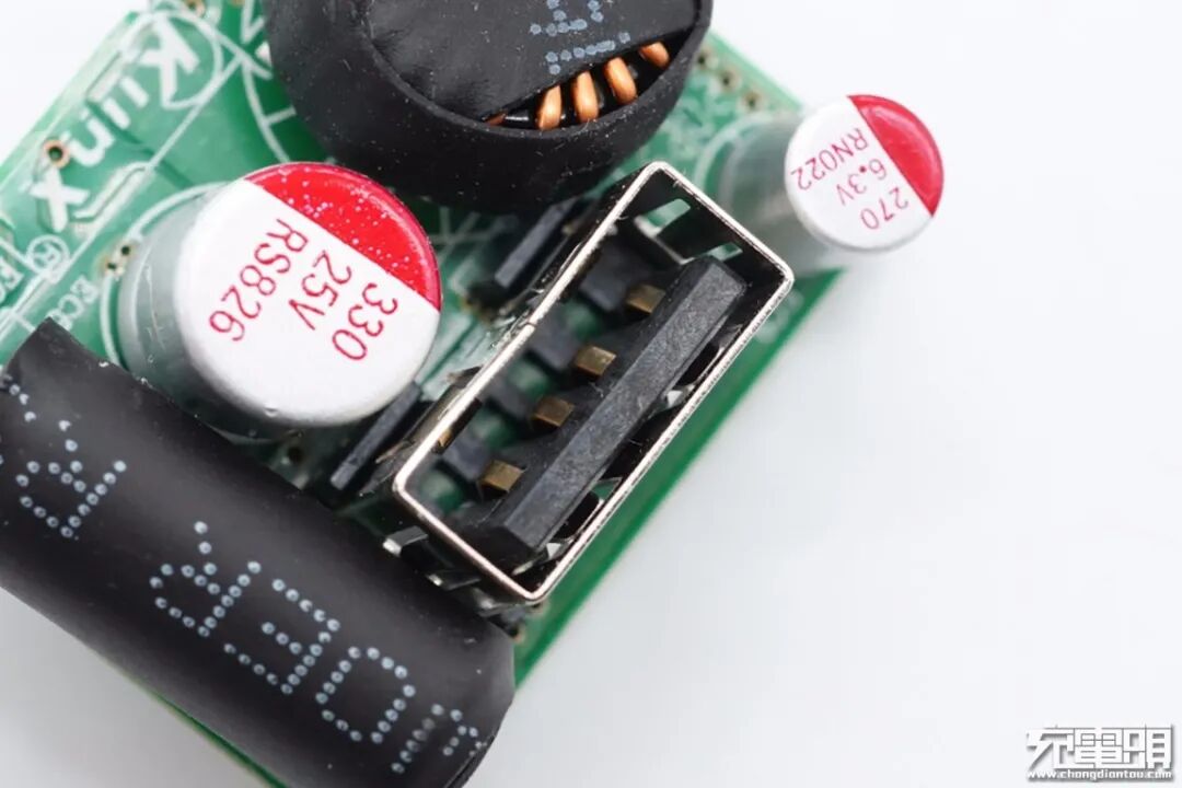 USB-A口的输出滤波滤波固态电容,规格为6.3V 270μF。