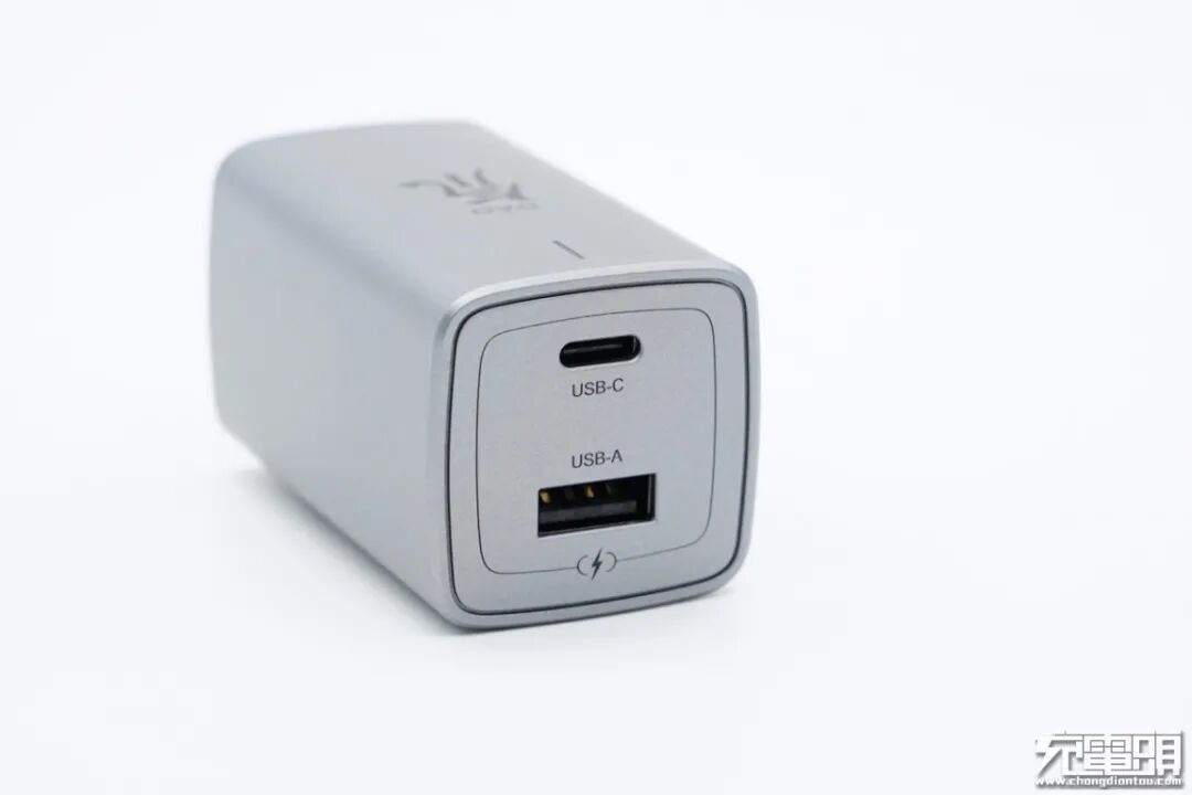 输出顶面配有1A1C两个接口,接口均为黑色胶芯,旁边印有USB-C和USB-A标识。