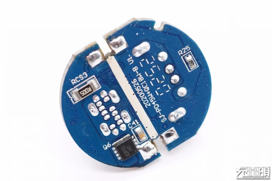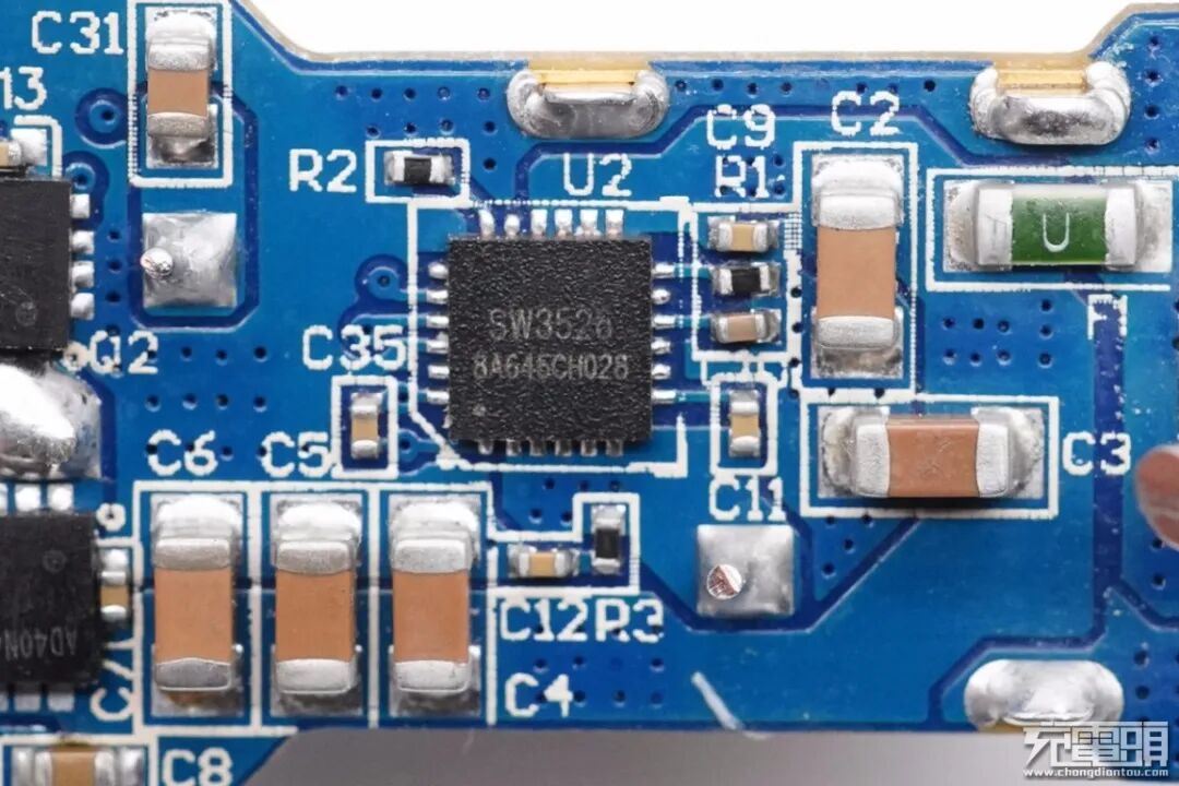 充电头网通过拆解了解到,这款车充DC输入分为两路,USB-C口由宝砾微PL5500升降压控制器搭配砹德曼MOS进行升降压,并通过慧能泰HUSB350进行协议识别智能输出合适电压,无论输入电压是12V还是24V,USB-C口均可实现45W快充输出;USB-A口采用智融SW3526进行降压控制和协议识别,芯片集成度高,仅需少量器件,有效精简电路并降低成本。车充输入输出端均有固态电容进行滤波,电感绝缘处理,USB母座过孔焊接,整体做工扎实可靠。