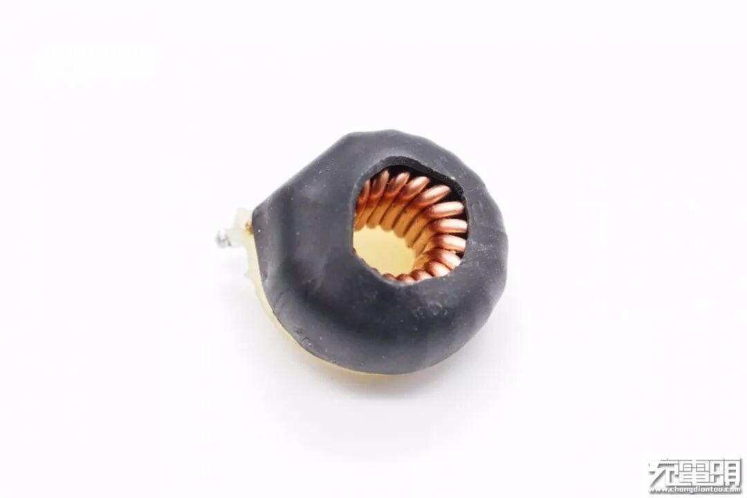 升降压电感特写,外套热缩管,下方垫有绝缘板进行隔离。