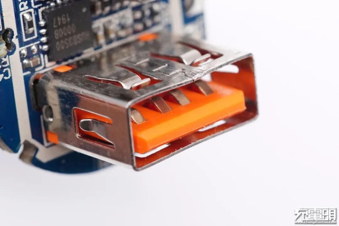 两个USB接口外套黑色塑料外壳,最外层还有导光圈。