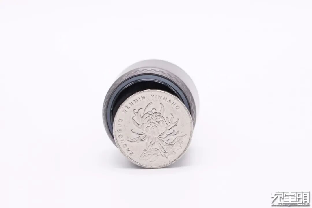 金属机身壳边缘设计有一圈小凹槽,看上去和啤酒瓶盖很像。