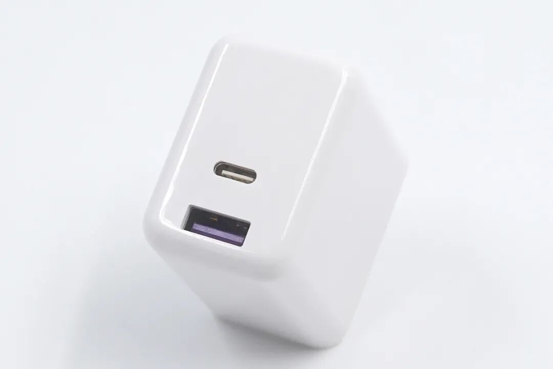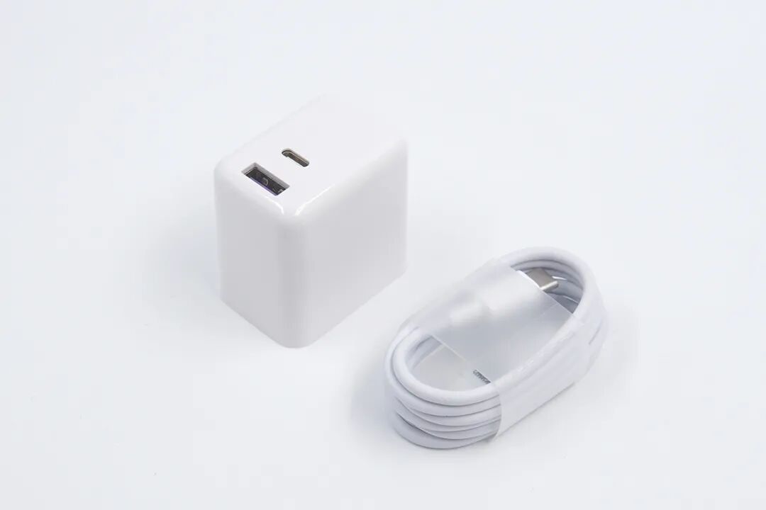 充电器采用PC阻燃材质白色外壳,表面亮面烤漆工艺处理,边角过渡圆润,整体洁白光滑设计简约。