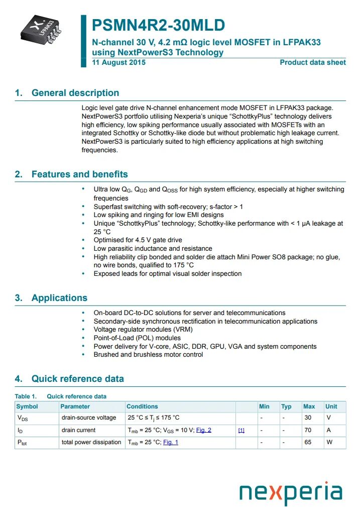 安世半导体PSMN4R2-30MLD,NMOS管,耐压30V,导阻4.2mΩ,逻辑电压驱动,用于VBUS开关。