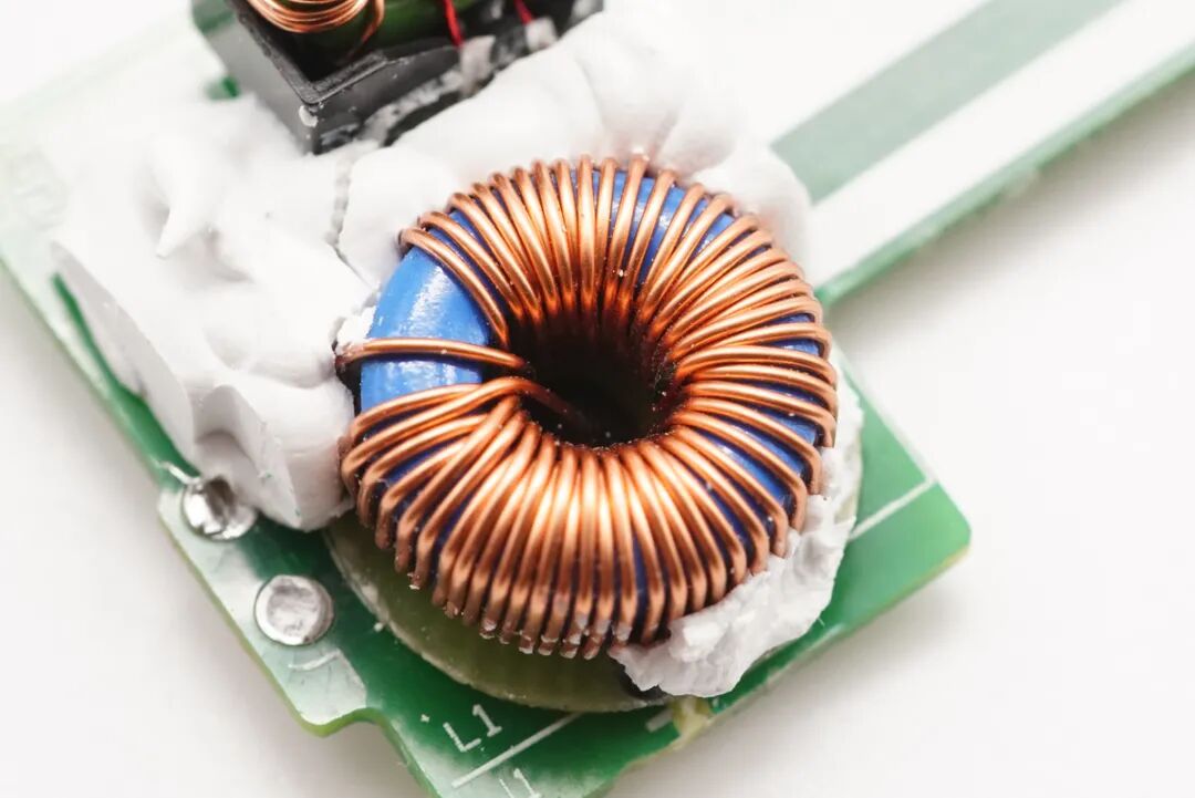 上层小板正面一览,设有共模电感、滤波电感和高压滤波电解电容(已被拆掉),并且打胶加固。