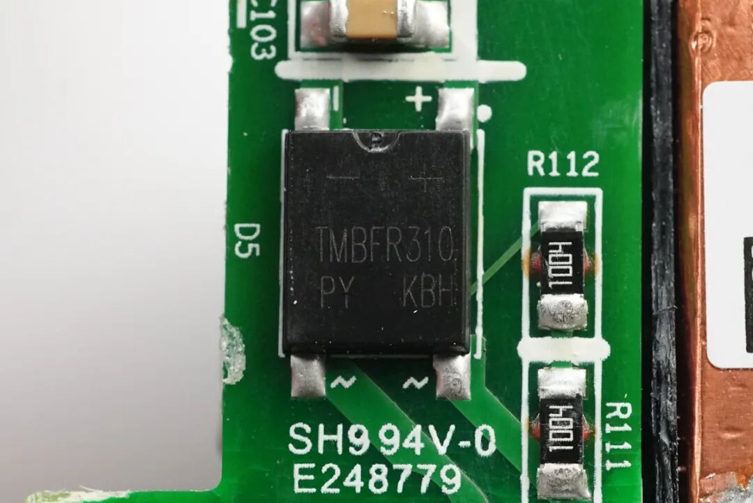 另一颗同样的GaN开关管特写,右侧是电流检测电阻,4颗并联。