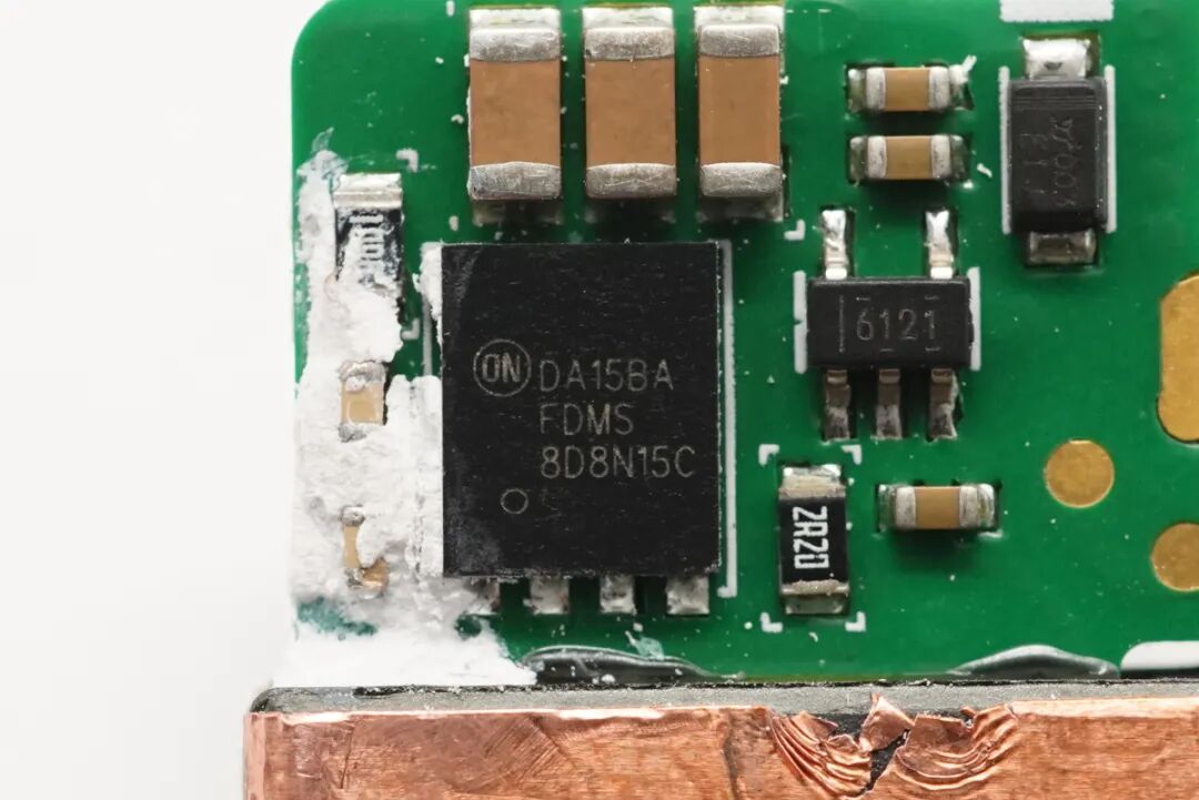 小板背面也是一颗降压控制器搭配两颗MOS成对出现,表示该充电器采用两路独立且相同的降压方案,单口60W和40W输出,双口同时输出功率智能分配。