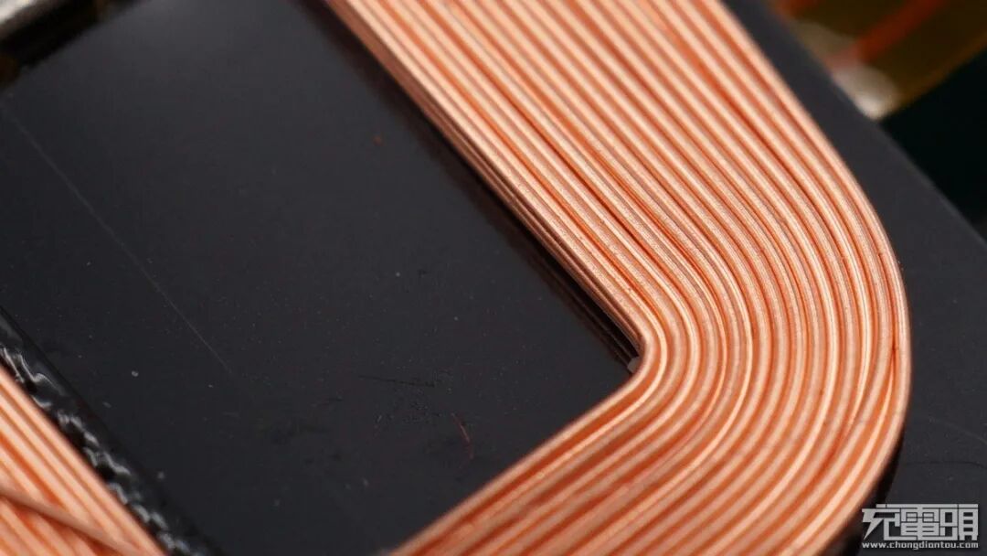 将机身壳拆开,无线充电线圈直接固定在外围保护塑料壳上,而正版的充电线圈使用硬胶贴合在机身内壁。
