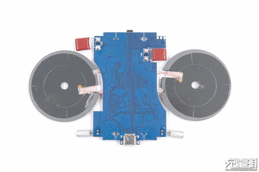 充电头网通过拆解了解到,机乐堂二合一15W无线充电器内置两个无线充电路,且电路设计一模一样,均采用定频调压降压架构,维普创新WP8006YS控制UBIQ QM3212M3 MOS管驱动线圈进行输出。维普创新WP8006YS集成MCU以及驱动器,电路精简,可有效降低成本。此外输入端有云星固态电容进行滤波,输出端采用科雅无线充专用谐振电容;USB-C母座沉板过孔焊接。产品整体用料做工扎实。