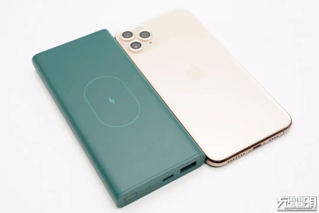 和iPhone 11 Pro MAX直观对比,移动电源还要“纤瘦”一些。