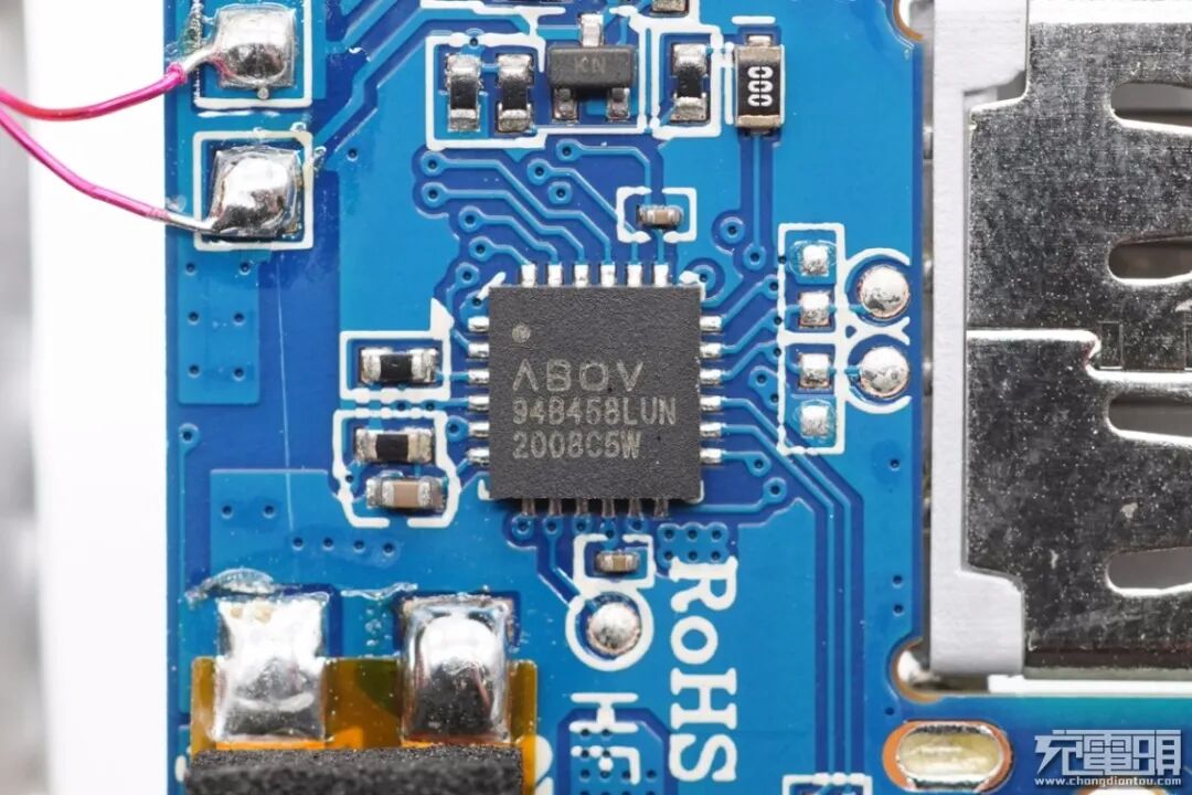 移动电源主控芯片采用现代单片机A94B458,用于端口输入输出控制和电量显示等功能。
