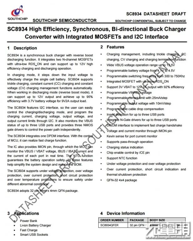 南芯SC8934详细资料信息。充电头网拆解了解到,南芯的快充芯片被广泛应用于移动电源、充电器、车充等领域,并被华为、小米、三星、全汉等知名品牌的数十款产品采用过,产品质量获得市场广泛认可。
