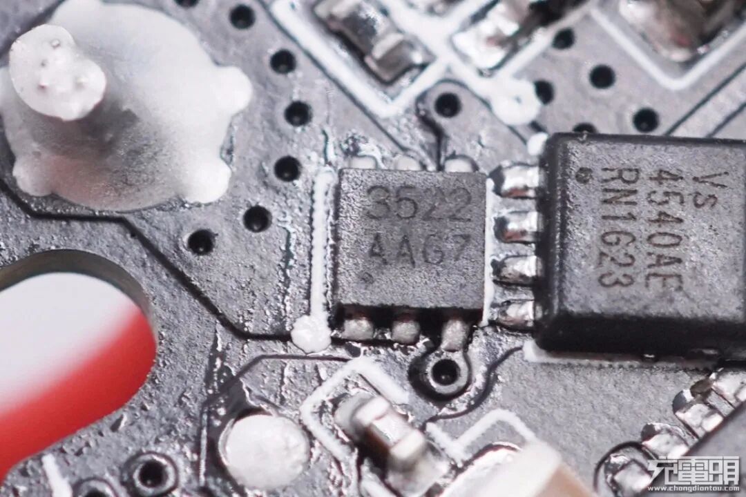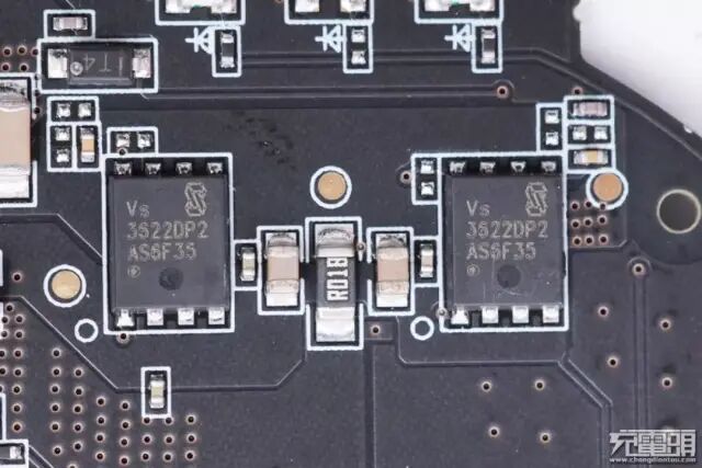 两颗输出开关管,型号VS3522AE,PMOS,来自Vanguard威兆。