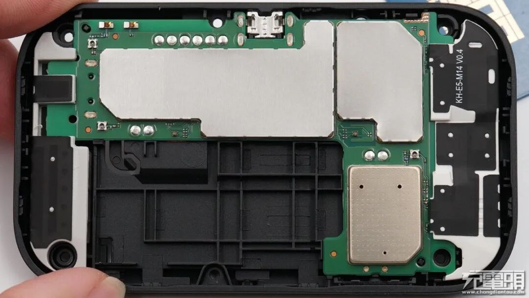 HUAWEI华为随行WiFi3机身小巧,边角圆润,十分便携使用也方便。充电头网通过拆解了解到,产品采用可更换电池设计,对于长久使用后电池老化问题,用户自己也能轻松解决。进一步拆解发现,内部采用薄膜天线,节省产品体积。此外还采用了海思半导体基带及PMIC,配合TI电池管理。主板上设有屏蔽罩,保证信号不会互相干扰。内置SLC存储器,使用时间长,稳定可靠。