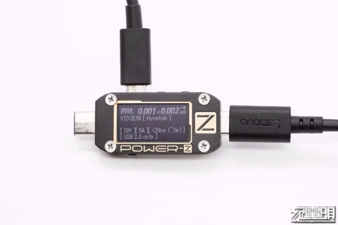 使用ChargerLAB POWER-Z KM001C检测发现,该线缆带有E-Marker芯片,芯片供应商为Hynetek慧能泰。线缆电力传输能力为20V 5A,数据传输能力为USB 2.0。